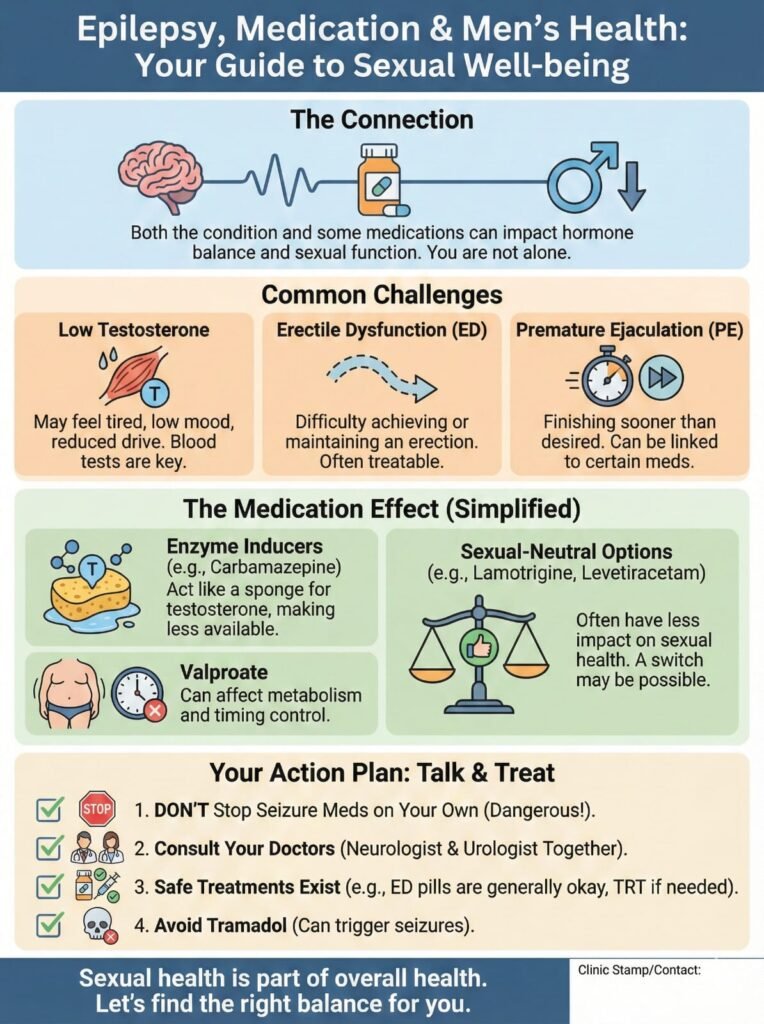- Lifestyle Shifts: Proper sleep, zinc-rich diets, and stress management are essential, as fatigue is a major trigger for both seizures and low libido.